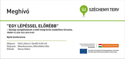 Az Igazgyöngy Alapítvány a gyermekek és fiatalok társadalmi integrációját segítő pályázati kiírásra a toldi integrációs modell továbbfejlesztésére támogatást nyert a TÁMOP-5.2.5/B-10/2-2010-0187 projekt keretében, 43 100 000 Ft-os keretösszeggel. A projekt megvalósításának időszaka 2012. június 1.–2014. május 31. A projektben, amelynek címe „Egy lépéssel előrébb”, a 12-29 éves korosztályú társadalmi-szociális hátránnyal küzdő fiatalok érdekében olyan alacsony küszöbű szolgáltatásokat nyújtanak, melyek hozzájárulhatnak a fiatalok esélyinek növeléséhez és a település jelenlegi állapotának pozitív megváltoztatásához. Ez jelenti a felkereső jellegű kapcsolattartás mellett a folyamatosan biztosított információk elérését, és különféle programszervezéseket, melyben fejlesztések, családtervezési és gondozási képességek, társadalmi részvételre irányuló ismeretátadások, szabadidő-szervezések, közösségszervező programok, tehetséggondozás, felzárkóztatás folyik majd. A projekt szoros kapcsolódási pontokkal működik majd az alapítvány egyéb esélyteremtő kezdeményezésével.