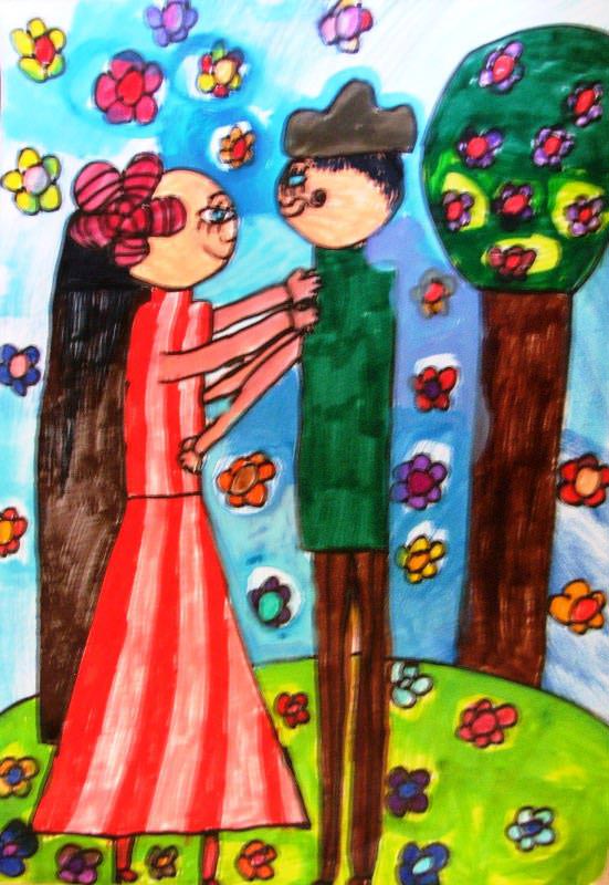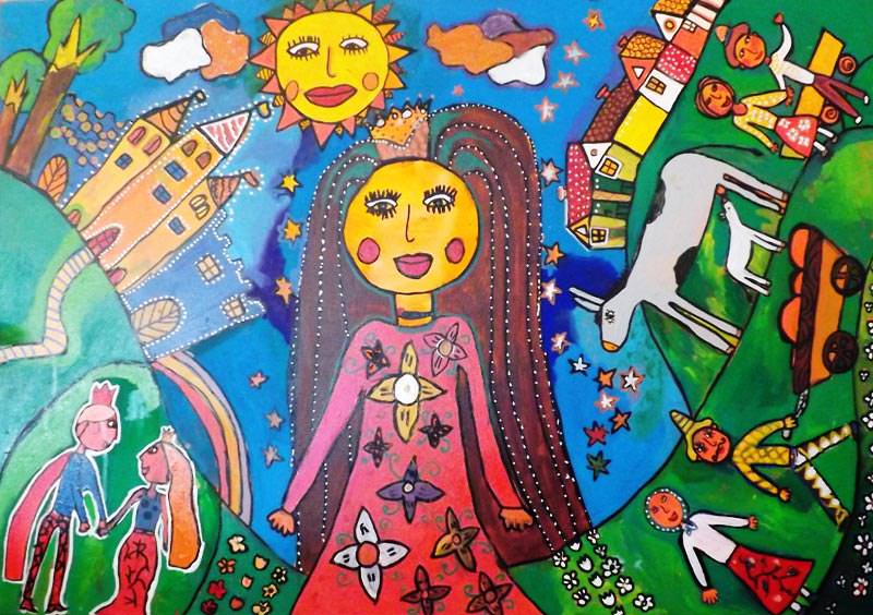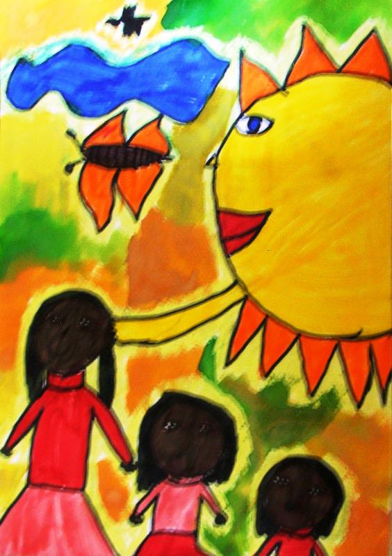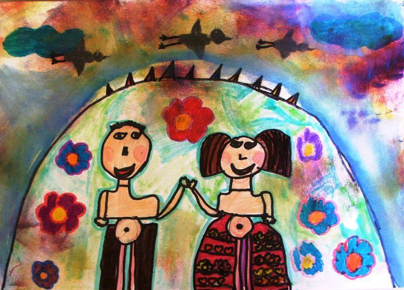 gyerekek színes ceruzákkal