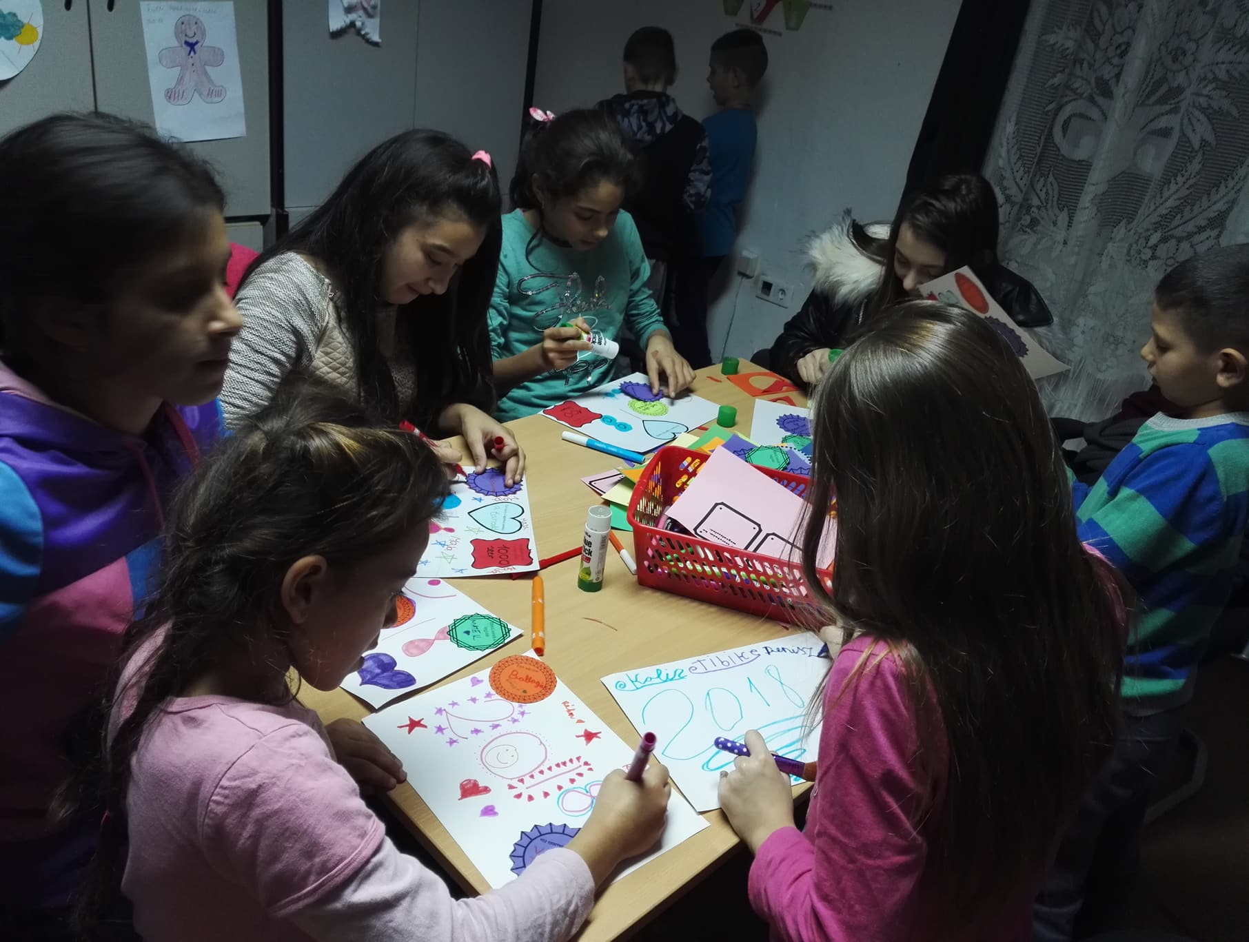 Az év első két hetében a szokásos csütörtöki esti közös programok erről szóltak. Meg egy kis activityről. Minden tanodásunk, sőt néhány szülő is készített egy-egy plakátot a 2018-as évről. A plakátra kis, színes papírokat lehetett ragasztani különböző kombinációkban, amiken egy-egy kezdő mondat szerepelt, mint például az, hogy ennyi könyvet fogok elolvasni, ebben szeretnék jobb lenni, vele szeretnék találkozni, ezt várom, ezt szeretném kipróbálni, ennyiszer leszek a tanodában, ezt szívesen megnézném és még jó néhány választási lehetőség. A mondatok befejezésére természetesen érkezett számtalan nehezen megvalósítható gondolat is, például igen jó lenne Messivel vagy Luna-val összefutni Told egyik utcáján vagy Biharkeresztesen, sőt a tanodába se lenne rossz, ha valaki 1000-szer el tudna jönni, de azért ezeket nem tudjuk 100 %-ig garantálni a gyerekeknek. Született merész, de reményteli vállalás, az egyik lány 35 könyvet olvasna el idén és annyit elárulhatunk, hogy már most is ennél kevesebbet kell neki. Olvashattunk arról is, hogy valaki jobb szeretne lenni nyelvtanból vagy kipróbálná az úszást, kézilabdát, esetleg a lovaglást. Van, aki szívesen találkozna az egyik rég nem látott önkéntessel és van, olyan, aki szerint idén mindenképp szüksége lesz egy bőr focilabdára. Szóval sokféle vágy és fogadalom megmutatkozott, némelyik vicces, némelyik kicsit megható, de reméljük minél több megvalósul belőlük. Hátha még Messi is kijön velünk nyáron a pályára focizni. A viccet félretéve, jó volt a gyerekekkel erről picit beszélgetni, az első csapattal kicsit jobban el tudtunk mélyedni, jobban igényelték a figyelmünket, a második csapat inkább önállóan, egymással megbeszélve vagy magukban kigondolva csinálták meg a plakátjukat.