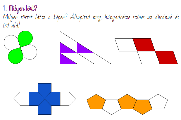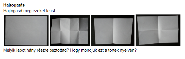 Ahhoz, hogy ezek a gondolatok előjöjjenek, és például a jó elnevezések rögzüljenek, többféle eszközt használunk. Kezdjük azokkal, amik a törtek bevezetését, értelmezését segítik.