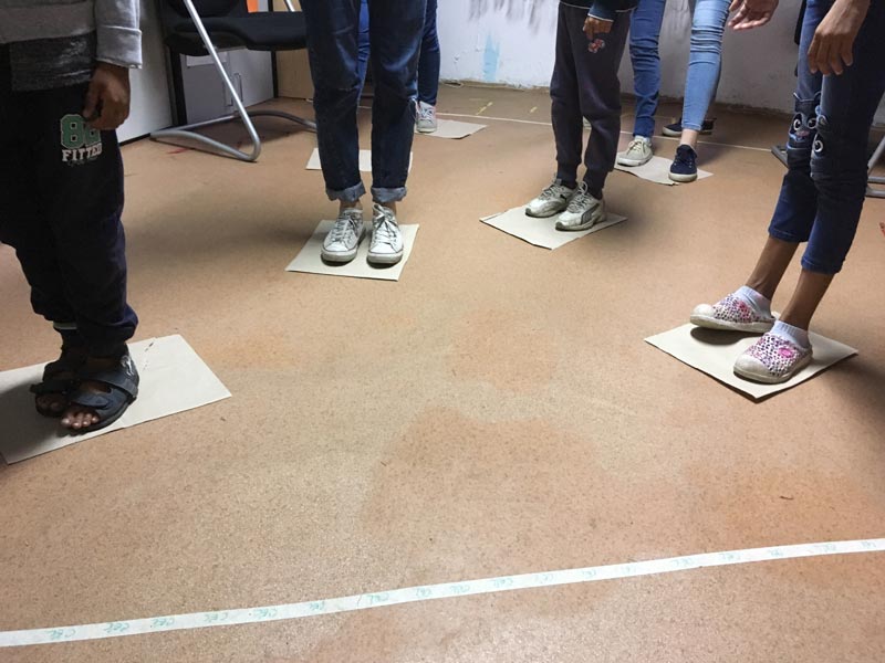 A kísértés mocsara – avagy a társaságkedvelő szigetek. Ez egy klasszikus mocsárjáték, amiben a start és a cél mező közt lebegő szigetek speciális működéssel bírnak. Ha egy szigetre már valaki rálépett, akkor onnantól azzal folyamatos kontaktusban kell lenniük – valakinek mindig kell rajta állnia. Ha erről elfeledkeznek, akkor az adott sziget kikerül a játékból, így annak teljesítése egyre nehezebbé válik. Ez a játék nagyon behúzta a srácokat, rögtön, ahogy elmondtuk a szabályokat már ugrottak is a szigetekre, majd tovább, rögtön elveszítve ezzel 1-2 szigetet, így általában mindig újrakezdtük a játékot. Aztán egyre inkább elkezdtek figyelni a sorrendre, magukra, egymásra, a lábaikra, a szigetekre, így végül minden csapat sikeresen teljesítette a feladványt. 1-1 szigetet általában minden csapat vesztett és a próbálkozások száma is 2-3 között mozgott, de a lelkesedés végig fennmaradt és a kudarcaikból tanulva végül egy jó stratégiát választva, koncentráltan haladtak végig a pályán. Ez a játék kevésbé lett reflektív, viszont sokkal nagyobb volt az élményfaktor benne. A foglalkozás végén szinte minden csapat ezt jelölte meg kedvenc játéknak.