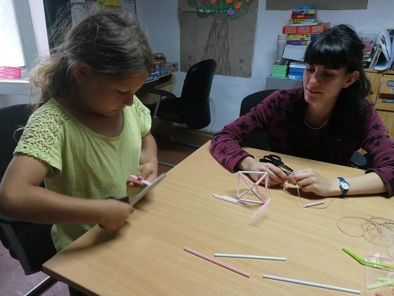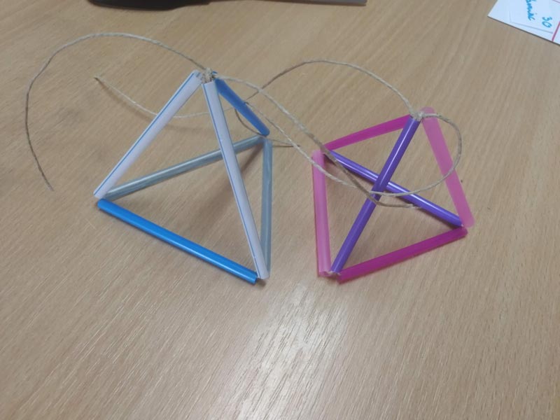 A foglalkozás vége választható volt, akinek volt még kedve és energiája készíthetett szívószálból és spárgából tetraéder, kockát vagy oktaédert.