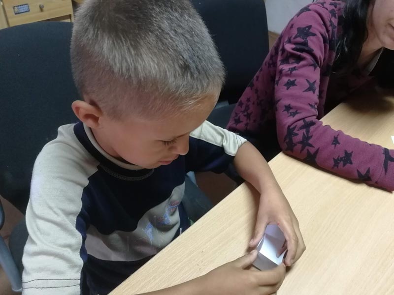 Kockával igen sokat találkozunk a hétköznapokban és a suliban is sokat szóba kerül. Nem kevés kavarodás van a négyzet, kocka fogalma között, síkidom és test megkülönböztetésében. Így hát elővettünk különböző hálókat, megvizsgáltuk őket, megtippeltük, hogy összehajtva vajon kocka lesz-e belőlük. A tipp után jött a kipróbálás is, ahol jól rájöttünk, hogy valamelyik hálóból miért nem lehet kocka vagy nahát, ebből mégis lett. A papírhálók után áttértünk egy online programra, ahol kicsit a fejünket használva próbáltuk kitalálni, hogy miből lesz kubiubi, azaz kocka.