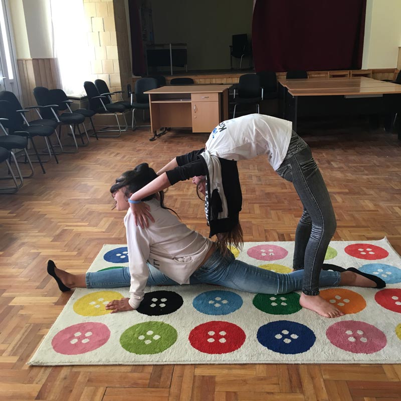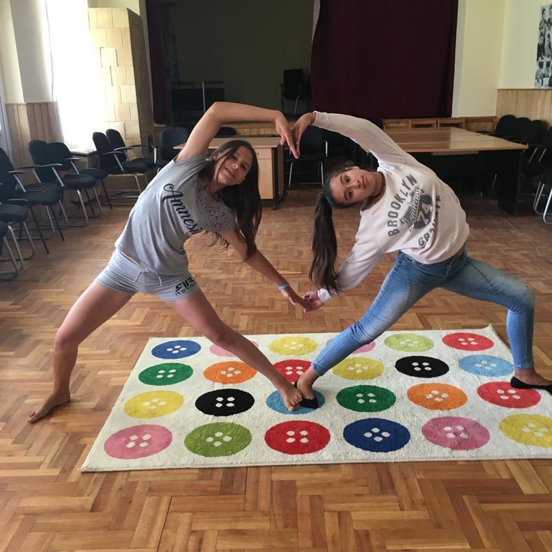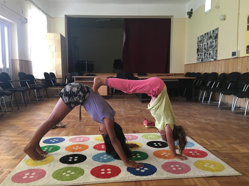 A projekthéten folytattuk a jógát is. Páros egyensúly gyakorlatok kerültek a középpontba.