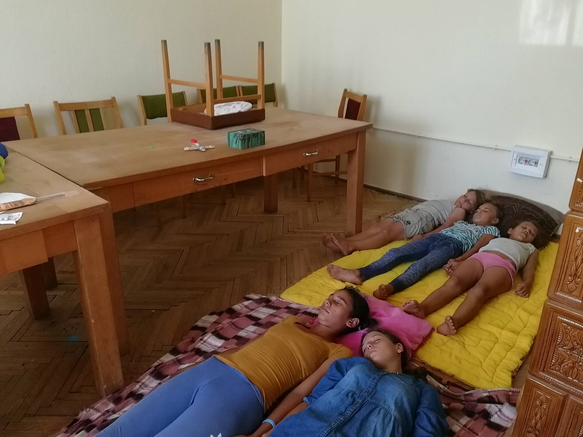 Akik megelégelték a nagy nyüzsgést és egy kis csendre vágytak, a nyugis szobába elvonulhattak. A foglalkozás során a tradicionális jógikus mélyrelaxációs gyakorlatból (jóga nídrá) kiindulva készített az egyik önkéntesünk egy gyakorlatsort, ami több rövid, egymásba folyó részből állt. A gyakorlat célja az ellazultság megidézése, a stresszoldás és a belső stabilitás és önértékelés támogatása volt. A gyerekek nagyon jól fogadták és nagyon jól reagáltak a gyakorlatra. Aki bejött, és végigcsinálta, kevés kivétellel marad a következő turnusra is, volt aki háromszor is végigcsinálta. Mélységesen értékelték a nyugalmat és ellazultságot, nagyon pozitívan és nyitottan álltak hozzá a gyakorlathoz. Abszolút sikert aratott ez a tevékenység, amihez hasonlóval nem minden nap találkoznak a gyerekek.
