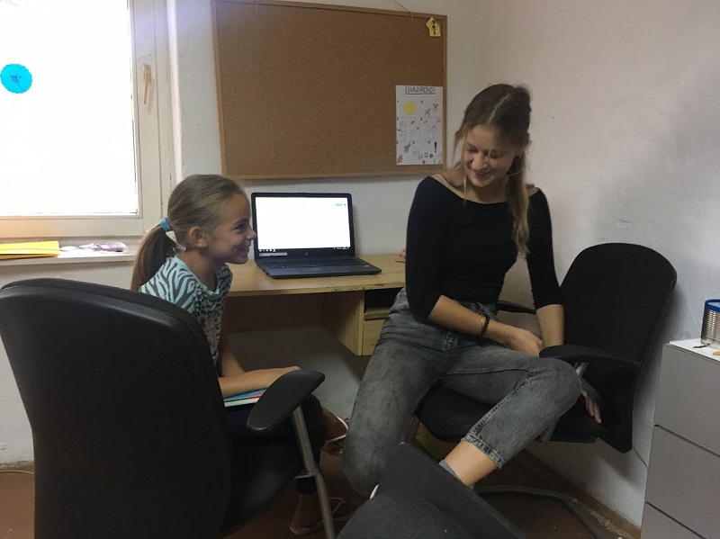 Amikor megérkeztünk egyből a mély vízbe estünk: foglalkozásterveket próbáltunk nagy üggyel-bajjal értelmezni, aztán meg is érkeztek az első gyerekek. Izzadt a tenyerünk, de megpróbáltuk kihozni magunkból a legjobbat. Nem volt jogos az izgalom, mert hamar megértettük egymást. De nem volt könnyű megszokni, hogy a város után egy végtelen tájban találtuk magunkat.
