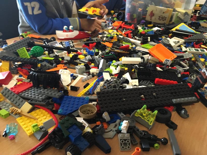 Délelőtt és délután is nagy sürgés-forgás volt a legós sarokban. Ezúttal csak alsósok csatlakozhattak, inkább fiúk jöttek, akik persze lelkesen építettek kalózhajót, istállót, repülőt. Külön öröm volt látni, hogy az ágyúval és árbóccal felszerelt kalózhajó kivitelezésében öt srác működött együtt, délelőttől estig dolgozva.
