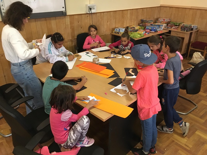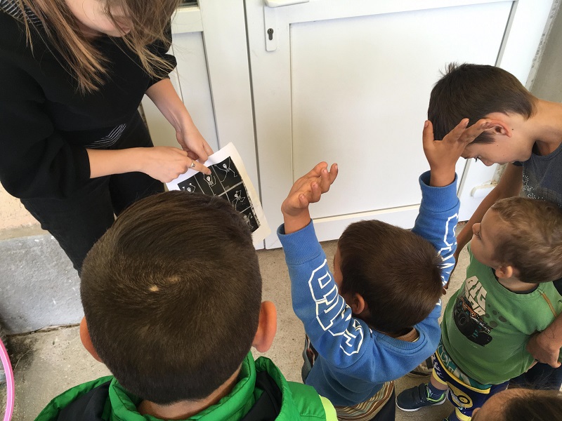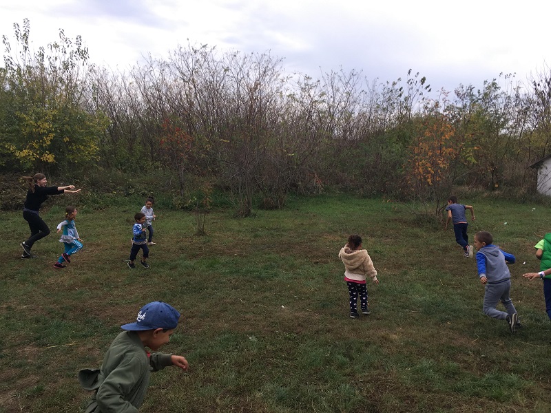 Az őszi időjárás miatt rövidebb kinti játékokkal készültünk erre a táborra, olyanokkal, amikkel 10 perc alatt levezethetjük a kézműves és társas közben felgyűlt energiáinkat. Aztán az idő kicsit megviccelt minket, és inkább tavaszra váltott, ehhez mi több spontán foci és bowling meccsel igyekeztünk is alkalmazkodni. Ezek mellett megmaradtak azért az eredeti ötletek is: délelőtt színfogóztunk és őrült fogóztunk, befelé menet pedig az ajtóban mindenki bemutatott egy-egy csontváz pózt. Elvégre mindjárt itt a halloween! Délután a régi motoros csoffadt patkány is előkerült, igaz, ezúttal egyáltalán nem csoffadt labdával. Kicsik és nagyok vegyesen beálltak, a játékok hossza pedig épp jóra sikerült ma, így tényleg kicsit nyugisabban tértünk vissza a benti tevékenységekhez.