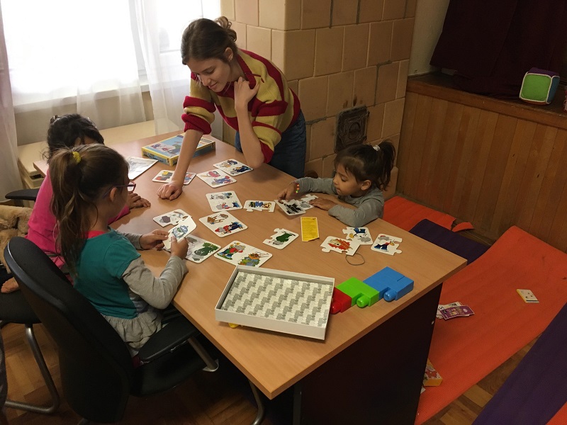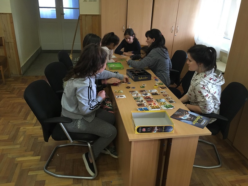 A kicsik mindenféle játékot előpakoltak, a kártyáktól kezdve a társasokig, bár a legtöbbnél csak a megnézegetésig jutottunk el, a játékig már kevésbé. Mindenesetre játszottunk Dumbó-s puzzle-lal, kártyákkal, és néhány olyan társast is megnéztünk, amikről később kiderült, hogy nagyobbaknak szólnak. Néha elkalandoztak a teremben és azon kívül is, de a gyurmázásra viszonylag sokan összegyűltek, és ezzel egészen a program végéig elszórakoztunk.