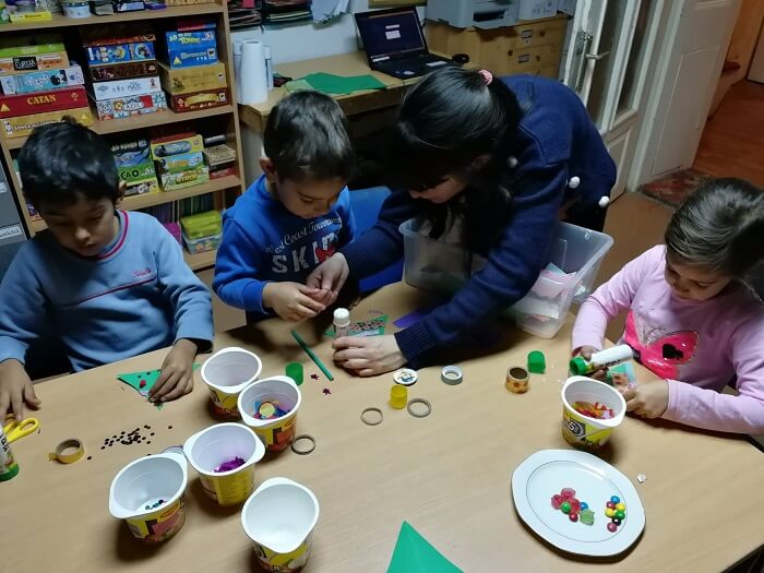 Az idei év úgy jött ki, hogy nem igazán maradt idő a karácsony és az utolsó tanítási nap között, hogy megtartsuk a szokásos két-három napos téli táborunkat. Így beáldoztuk a tanulásokat és igyekeztünk ez alatt a négy nap alatt minden karácsonyos, táboros programot bepótolni. Volt idő hát kézműveskedni, sütni, enni-inni, közösen játszani, de még társasozni is. A tanoda kicsi, viszont mi jó sokan vagyunk, hát még ha az ovisokat, kistesókat, nagytesókat is számításba vesszük, ezért a gyerekek három csoportban, három-három alkalommal jöhettek.