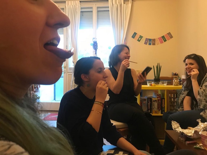 Azt mondom, hogy a legtöbben megszokták, és nem megszerették. Az elején az újdonság hatása mindenkit behúzott, de aztán, mikor már a hatodik alkalommal is harangozunk a nyelvünkkel és meghintáztatjuk, akkor már mindegy volt, hogy hozzuk a zizit, vagy hülye arcot vágunk. Uncsi és béna. Szóval a legnagyobb kihívást a motiválás jelentette/jelenti.