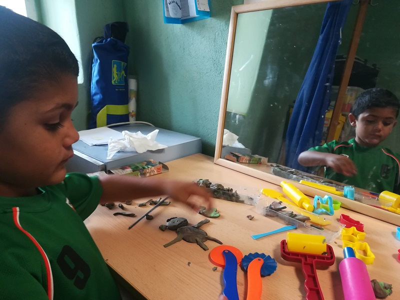 A logopédiai fejlesztéshez hozzátartozik a rendszeres gyakorlás. A napi szintű átismétlés nem volt reális cél, de az igen, hogy minden héten legyen egy kis gyakorlás. Ezért, amikor személyesen nem voltam ott, akkor is került az egyéni foglalkozástervbe egy 5 perces logopédia, amit a jelenlévő pedagógussal, vagy önkéntessel együtt csináltak a gyerekek. Annak érdekében, hogy jól nyomon követhető legyen, minden alkalommal videóra rögzítettük a gyakorlást. Ezek a felvételek jól mutatják, hogy hogyan halad hétről hétre a gyerek. Ezen felül nagyon szórakoztató a csapat számára, ahogy a pedagógusok életükben először próbálják a gyakorlatokat kivitelezni. Ahhoz, hogy a többi pedagógus és önkéntes is kényelmesen érezze magát a logopédusi szerepben, egy belsős képzést tartottunk, ahol kipróbáltuk közösen a feladatokat és megbeszéltük, hogy mire kell figyelni, hogyan tudjuk segíteni a gyerekeket.
