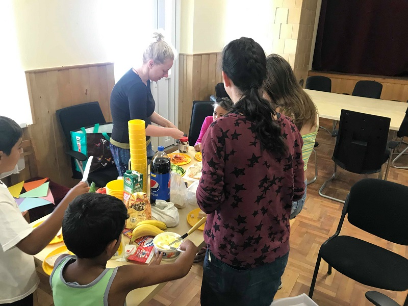 Az első nyári táborunk egyik legnagyobb dobása a gyerekek által végül “céges” néven emlegetett projekt volt. A Visfontis támogatásának köszönhetően arra kértük őket, hogy csapatonként 6-7 ezer forintból rakjanak össze egy minivállalkozást, mely megvendégeli a többi gyereket és a családokat vasárnap, a tábor lezárásaként. Az idősebb tanodások közül kerestünk meg néhány gyereket és végül hárman vállalták egy-egy csapat vezetését, majd a jelentkezők közül maguk válaszhtatták ki munkatársaikat, de azt is, hogy közülünk, önkéntesek és pedagógusok közül, kikkel dolgoznának együtt. A hét során az identitás megtalálása, a közös munka megszervezése, a menü kitalálása és a beszerzés volt a cél. Nézzük, hogyan oldották meg ezt a csapatok.