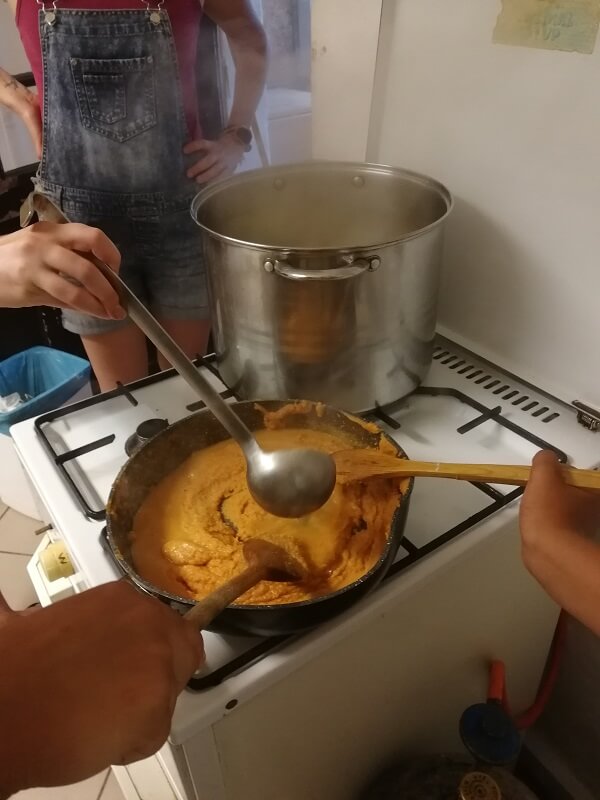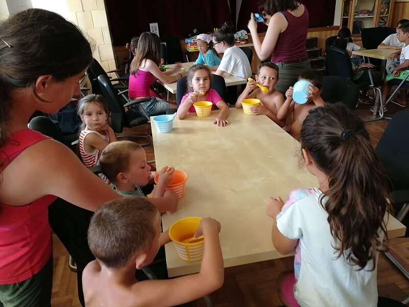 Amikor feltettük főzni a levest, akkor a baba-mama klub szobájából előkerült egy várandóssági könyv is, annak kapcsán pedig ezernyi kérdés a lányokról a terhesség és szülés kapcsán, miközben ők is meséltek, hogyan születtek a tesók, kihez milyen sztori kapcsolódik. Tulajdonképpen a közös főzés is egy igazi csajos klubbá alakult, ahol őszintén lehetett beszélgetni mindenről, miközben a háttérben rotyogtak a finom levesek. Tiszta idill. Másnap ezekkel a levesekkel vendégeltük meg a gyerekeket a kultúrban, ami szuper lezárása volt a második tábornak.