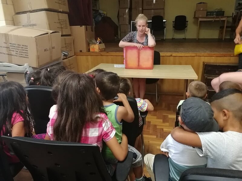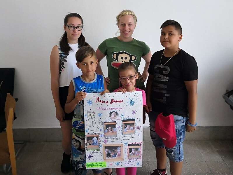 A terv az volt, hogy miután kicsit megismerkedünk a papírszínházzal, a diavetítős meséken keresztül, a hurkapálcikás, bábozós mesét már közösen adjuk elő három-négy gyerekkel, hiszen az már egy kooperatívabb, többkezes mesélést igényel. Ezt a bemutatót az első táborra terveztük, több napra kiterjedő készülődéssel: több alkalmas próbával, meghívók írásával, plakát készítéssel és természetesen magával a nagy előadással.