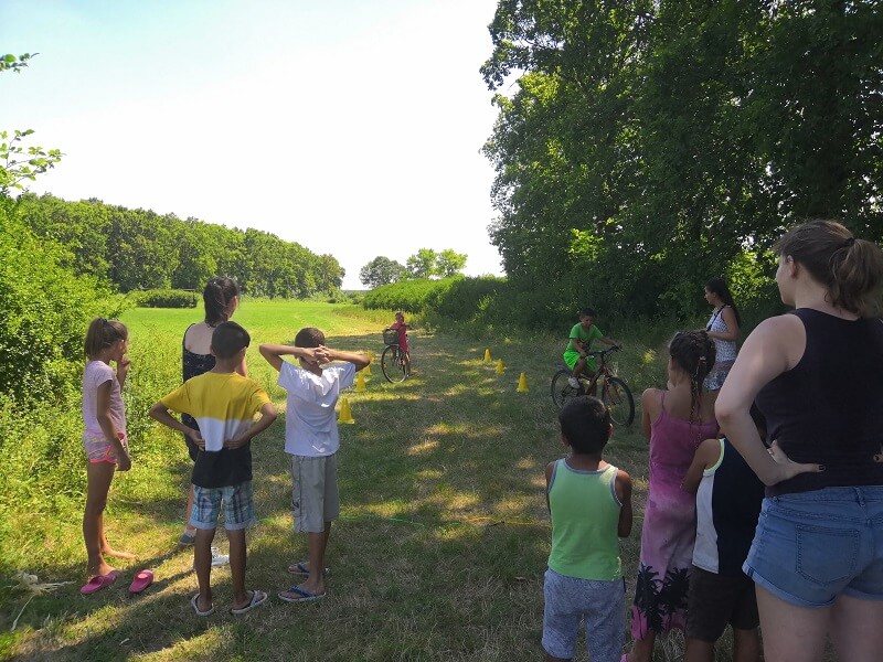 Most először rendeztünk Toldon bicikli akadályversenyt. A programot minden iskoláskorú gyereknek megnyitottuk, viszont a tervezhetőség és a csapatok beosztása miatt előre fel kellett iratkozniuk. A csapatokat mi állítottuk össze az életkorokat figyelembe véve. Minden csapatban egy gyereknek volt bicaja, amit csapaton belül felváltva használtak, így azok is jöhettek, akik nem tudtak saját kerékpárt hozni. Az előre meghatározott beosztást elsőre nem mindenki fogadta el, voltak konfliktusok, ki kivel szeretne, vagy nem szeretne lenni, azonban ezeken sikerült túllendülni és elkezdhettük a versenyt.