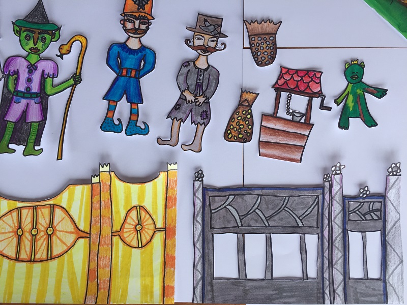 A projekt második alkotói fázisában az elkészült mesék illusztrálása, vizuális megjelenítése következett a művészeti iskola pedagógusainak vezetésével. A mesékhez illeszkedve három csoportban folyt az eredetileg is offline-nak tervezett munka. A hátterek és a bábok elkészítése során felhasználtuk az iskolában alkalmazott jól bevált technikákat és módszereket, amelyeknek köszönhetően igazán beszédes alkotások kerültek ki mind a gyerekek, mind a felnőttek keze alól. Persze ez annak is köszönhető, hogy a meséket ők maguk írták, így már voltak előzetes elképzeléseik a szereplők külsejét és a mesék jeleneteiben szereplő helyszíneket tekintve, ez utóbbiakat sok esetben saját környezetük is inspirálta.