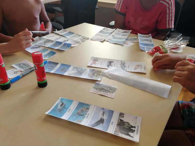 Első nap még nem a valós terepen dolgoztunk, hanem egy izgalmas, interaktív múzeumban néztünk körbe, hogy kellően megszívjuk magunkat az elmélettel, mielőtt gyakorlatban is kipróbálnánk magunkat. Az egyik sarokban fülhallgatóval az ősi világ hangjait hallgathatták meg a résztvevők. Akinek kedve volt leülhetett és vetítést nézhetett az őslények méreteiről. Vajon melyik állat nagyobb az embernél és melyik gyorsabb a másiknál? Ez komoly vitákra és elemzésekre adott lehetőséget. A mágneses táblánál egy játék várta az elméleti tudásra szomjazó tudósokat: csontvázakat és állatokat lehetett összepárosítani. Itt viszonylag gyorsan konszenzusra jutottak a gyerekek. Volt még kiállítva életnagyságú dinoszaurusz lábnyom, fog és tojás, amit összemérhettünk a saját a lábunkkal és fogunkkal vagy akár egy tyúktojással. De az egyik számítógépen egy interakítv képet nézegetve a résztvevők azt is megtudhatták milyen növények éltek vagy hol alakulhatott ki az élet először. A múzeumlátogatást egy közös feladattal zártuk, ahol az ifjú tudósoknak egymáshoz viszonyítva kellett megtippelniük, hogy egy élőlény hamarabb vagy később élt, mint egy másik.