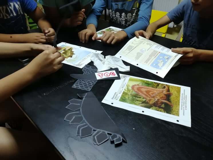 Itt már kőkemény terepi munka következett, dinoszaurusz maradványok után kezdtünk kutatni Toldon. Egy gyors ötletelést követően, amikor megbeszéltük, milyen helyeken, milyen anyagok és körülmények között találhatják meg az évmilliókkal ezelőtti csontokat, kutatócsoportokat alakítottunk. Néhányan homokba süllyedt, mások jégbefagyott dínókat kerestek, és akadtak olyanok is, akik több, egymásra rakódott réteg alján találták meg az elrejtett állatokat. Paleontológusaink kivételes munkát végeztek, öt teljesen épen megmaradt dinoszaurusszal tértek vissza a laborba. Miután a megtalált egyedeket elküldtük restaurálásra, a testrészek szerepét kezdtük kutatni. Olyan kérdésekre kerestük a választ, hogy mire jó a taréj, miért volt néhány dínónak tolla vagy lemezei, vagy miben különbözött a növényevők és a húsevők karma. A projektet ezután egy kvízzel zártuk, megnéztük, kinek milyen információk maradtak meg a három nap folyamán.