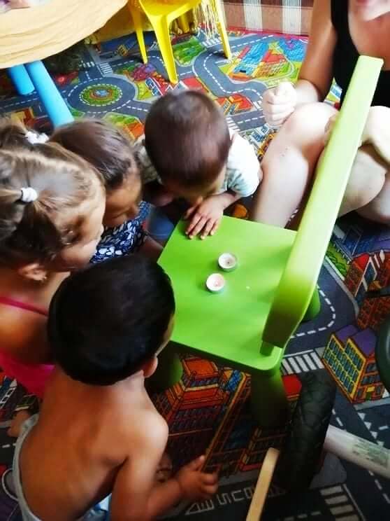 Szeptembertől a középső csoportosokkal a korábban kialakított módszertant visszük tovább az énekléssel, mesével, drámával, de ezen a bevezető alkalmon szerettünk volna többféle tevékenységet kipróbálni és szabadabb keretekkel dolgozni. A meseházat, a mécsest, a közös éneklést, tornázást megtartottuk, de utána szabad játék következett, amikor megnéztük, hogy milyen tevékenységeket választanak a gyerekek és melyikben tudnak jobban elmerülni. A nyolc új gyereket két csoportban hoztuk el, és mind a két csoporttal nagyon pozitívak voltak az első tapasztalatok.