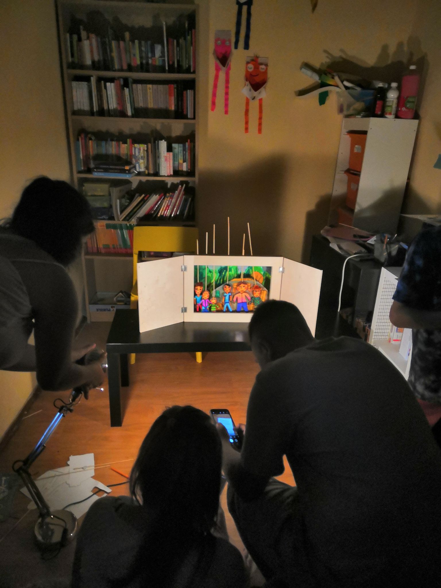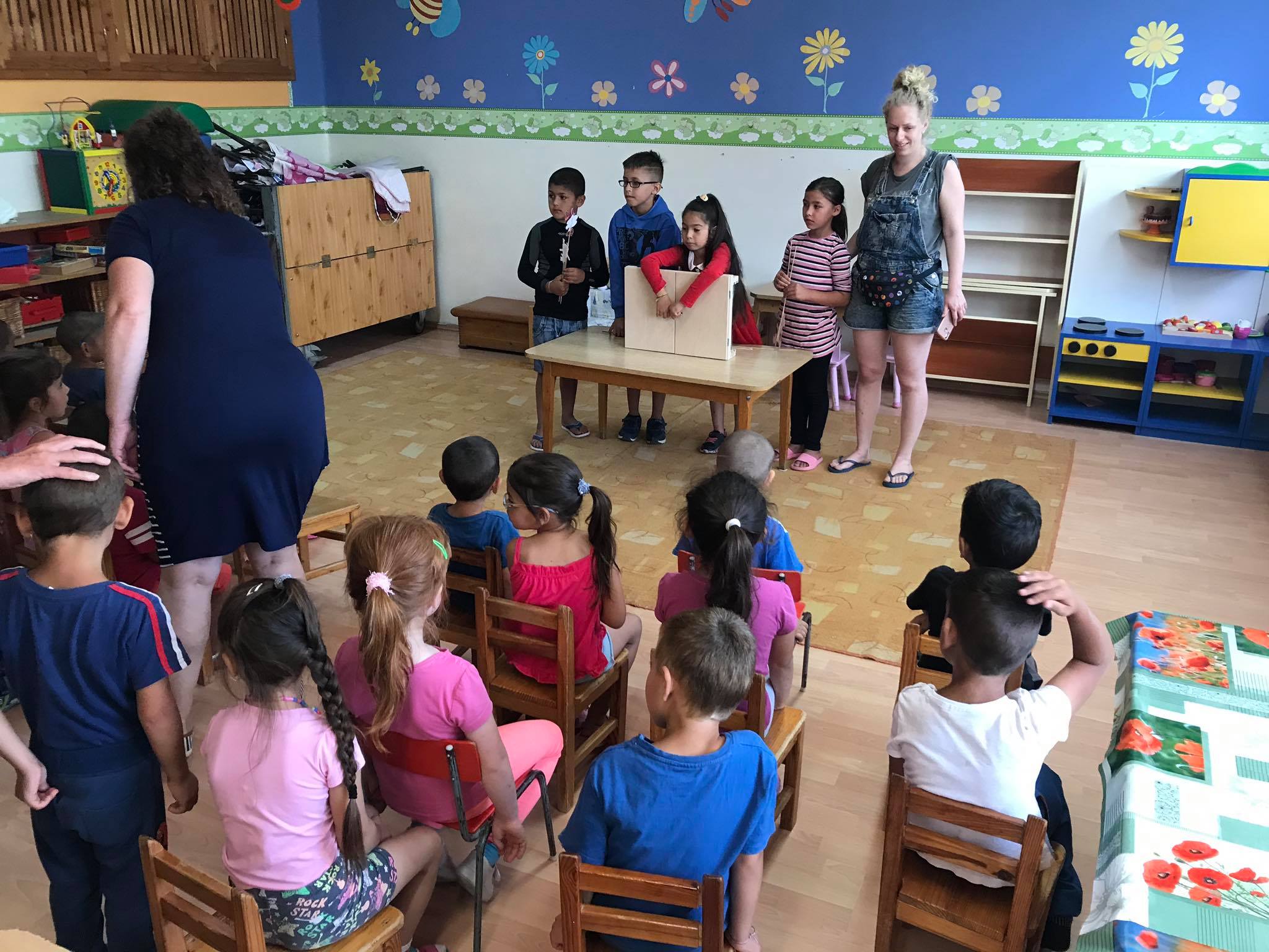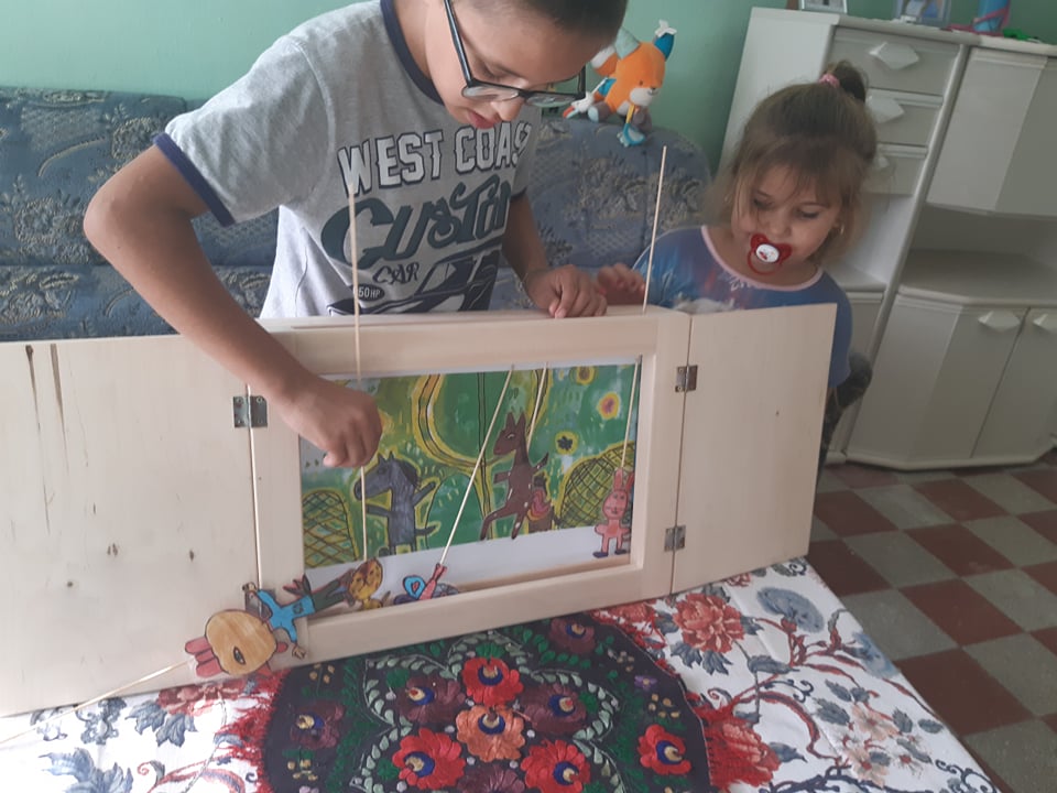 A projektünk harmadik alkotói fázisát a nyári táborokra időzítettük: a tulajdonképpeni papírszínházazást, az általunk írt és vizuálisan megjelenített mesék életre keltését, ezek megosztását.