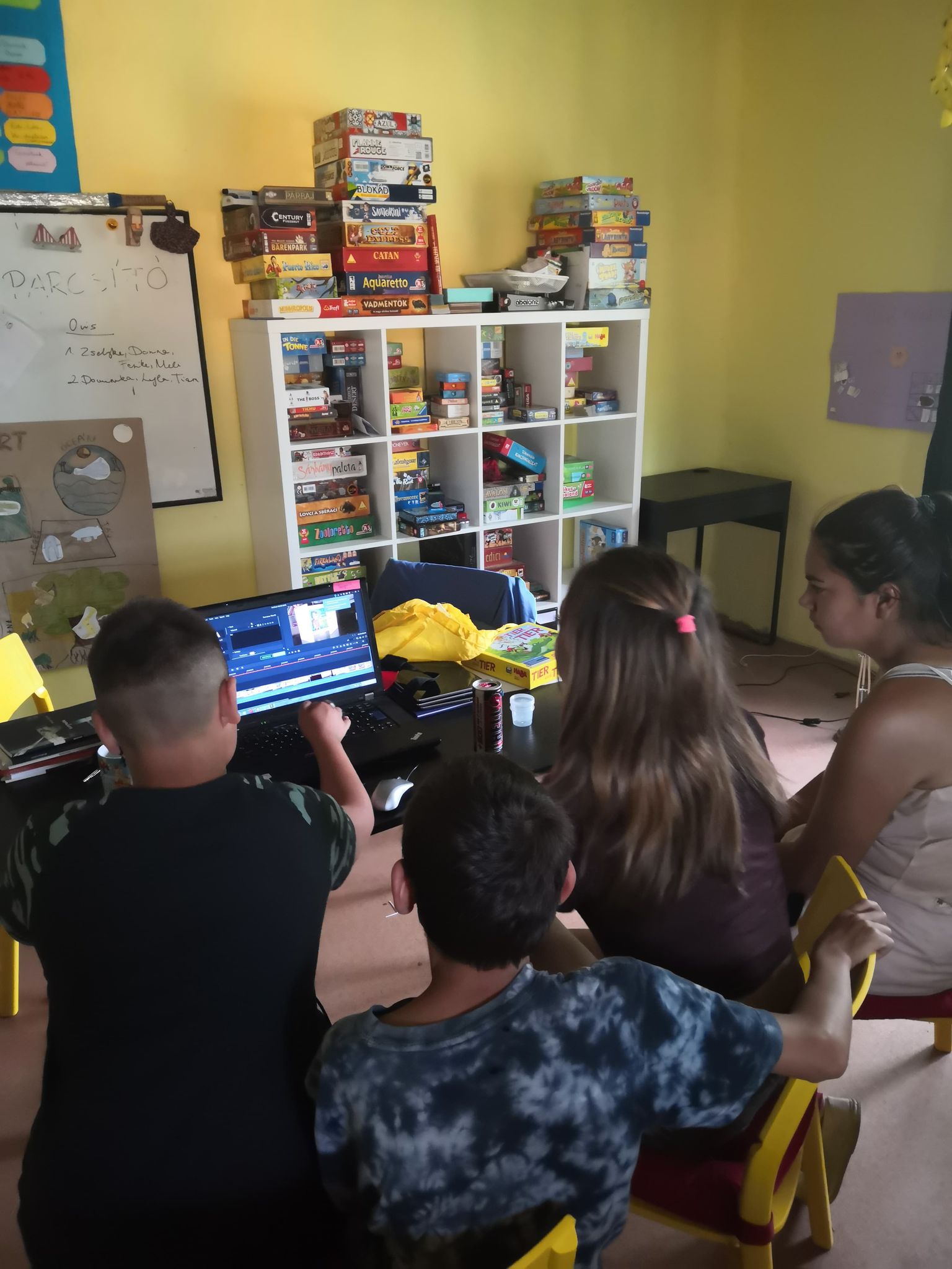 A felsősökkel a második táborban szerepeltünk, viszont picit megfűszereztük a bábozást, hogy nagyobb legyen a kihívás. Médiákat ötvöztünk azzal, hogy a papírszínházas produkciót digitalizáltuk: egy kisfilmet készítettünk Gödöllei Sztív megható történetéből. Komoly munkát fektettünk bele a pár perces videóba, hiszen színházat is csináltunk, meg forgattunk is egyszerre, illetve egy plusz másfél foglalkozás keretén belül megtanultunk videószerkesztő programot használni. A színház és forgatás szereposztásból, rendezésből, extra, impromptu kellékek készítéséből (a már meglévő papírszínpadi bábjainknak) és többszörös próbából, bizonyos jelenetek újra és újra felvételéből/eljátszásából állt. A videó vágása és effektekkel való megspékelése külön digitális kompetenciafejlesztő kalandnak mondható, hiszen sikeresen vettünk minden felmerülő technikai akadályt! A tábor utolsó napján kasszasikerben, teltházas premierben volt részünk a kultúrban!