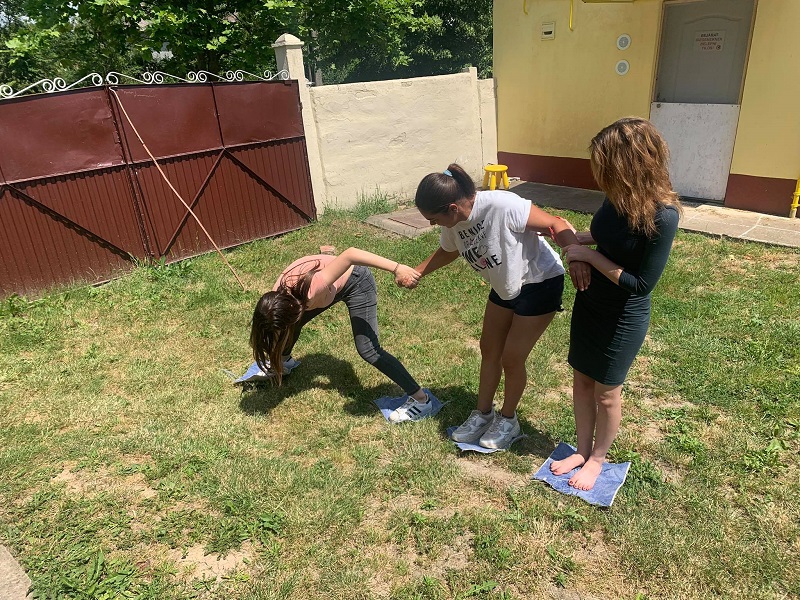 Már a tanodába sem lehetett ám akárhogy megérkezni. Egymásra hangolódós, összedolgozós, bizalomépítős akadályokkal kellett megküzdeni, hogy elnyerjék a jogot az évzárásra.