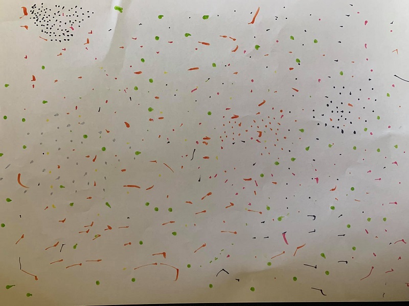 Közös “műalkotás” is készült. Mindenki tehetett annyi pöttyöt egy lapra, ahányszor tanult a tanodában. Íme, a mű: