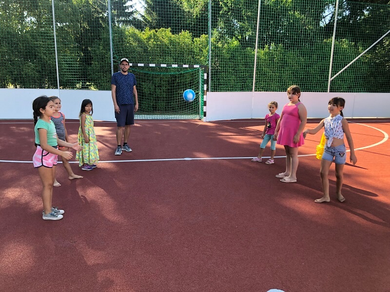 A kézilabda már kicsit nehezebbnek bizonyult. A harmadik táborban ezzel ismerkedtünk, és gyors fejlődést láttunk a gyerekeknél a labda kezelésében, a célzásban és az elkapásban is. Legtöbbüknek azonban nem ment még könnyen a helyezkedés, sokan egy kupacba gyűltek, míg mások egy helyben maradtak egészen távol a történésektől. Gyakorlás közben ügyesen megoldották ezeket a helyzeteket, amikor kifejezetten ez volt a feladat, ki tudtak futni a védők mögül, meccs közben viszont itt is előjött, hogy egyelőre kevés tapasztalatuk van a pályán való mozgásban. Egy királylabdához hasonló játékkal, egyszerűbb szabályokkal próbálkoztunk egyébként, ami állandó kapussal egész jól működött. Bár kevésbé adott gyors sikereket ez a sport, az edzésekre most is szívesen jöttek a lányok, ami remek visszajelzés nekünk, hogy legyen majd folytatás.