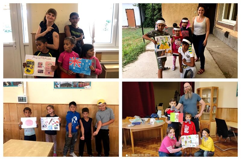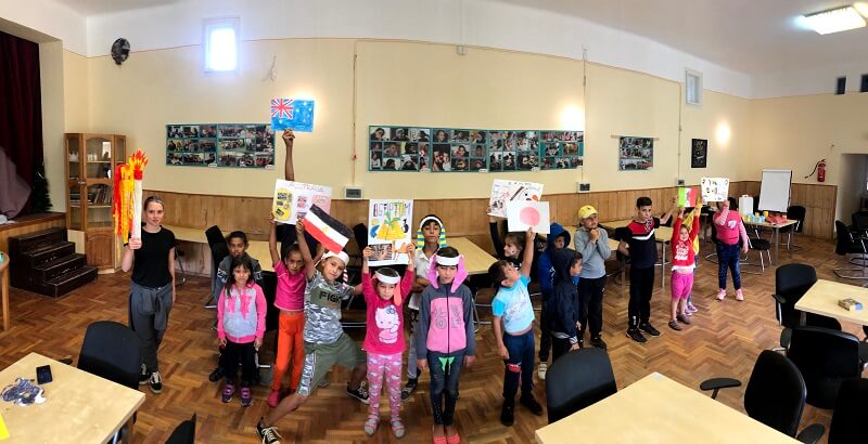 A délelőtt első fele a felkészülésé volt, a gyerekeket országokba osztottuk és azt a feladatot kapták, hogy ismerjék meg honnan származnak: milyen zászló, milyen nyelv, milyen ételek, italok, szokások vannak abban az országban, amelyek képviselőivé váltak. Készítettünk zászlót és egy plakátot is, de volt ahol zenét hallgattunk, fejdíszt, bajuszt csináltunk vagy megtanultunk az adott nyelven köszönni. Négy ország vett részt a játékokon: Ausztrália, Egyiptom, Japán és Mexikó.