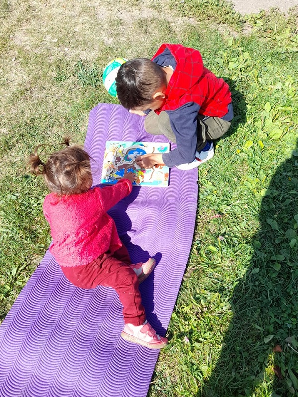 A szép őszi időjárás kedvez a családlátogatásoknak. Ismerkedünk egymással kölcsönösen már egy hónapja. A kezdeti fürkésző pillantások barátságos üdvözléssé szelídülnek. A karonülő gyermekek integetnek, a nagyobbacskák elémszaladnak, segítenek leteríteni plédet és izgatottan várják milyen játék, mesekönyv kerül elő a táskából. Jó keretet ad a találkozásoknak a megérkezéskor közösen, egymás kezét fogva elmondott versike. Oldja a feszültségét és rá is hangolódunk az együtt töltött időre. Mese, mondókázás, gyermekdalok, nagy- és finommozgásokat fejlesztő, a megismerést segítő játékok kerülnek terítékre.
