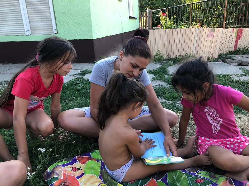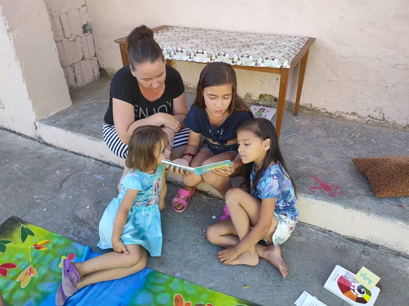 Sokat meséltünk már messziről, online, önkéntesekkel, sőt évközben a mesedélutánokon a tanodában is, szülőkkel és gyerekekkel együtt, személyesen. Így arra gondoltunk, nyáron kipróbálunk valami mást, pontosabban a kettőnek az ötvözetét. A táborokban többnyire úgyis sokan vagyunk lent, régi és új arcok is, mi lenne, ha most házhoz menne a mesélés?
