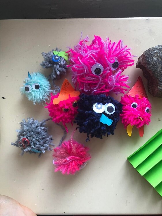 A pom-pom szörnyek kézműves egy picit nagyobbacska korosztálynak lett volna ideálisabb mint a toldi táborban lévők. Még is a gyerkőcök nagyon türelmesen és ügyesen készítették el a pom-pomponokat majd dekorálták ki őket saját ízlésük szerint minden színben és minden variációban. Nagyon büszkék lehetnek magukra!
