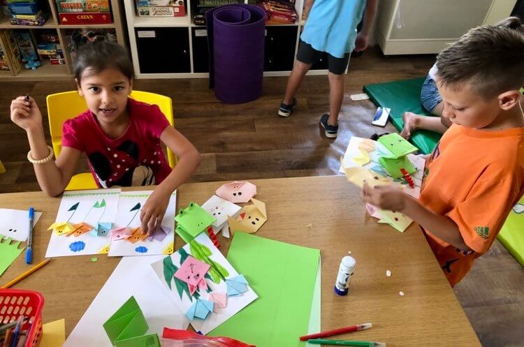Pénteken színes papírokból hajtogattunk különböző mókás állatfigurákat. Egyszerű origami technikát használtunk, több gyerek meg is tanulta a kedvenc állata hajtásának lépéseit. A leglelkesebbek pedig egész papírállatkerttel tértek haza.