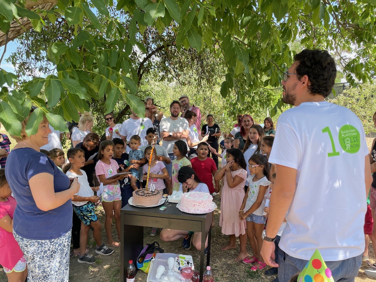 Tíz év sok. Én például ezen kívül semmit nem csináltam még tíz évig, szóval különösen megható, hogy van olyan tanodásunk, aki most is jár hozzánk és az első nyár táboraiban is jelen volt már. Íme a tíz éves buli csapata, régiekkel, újakkal, együtt: