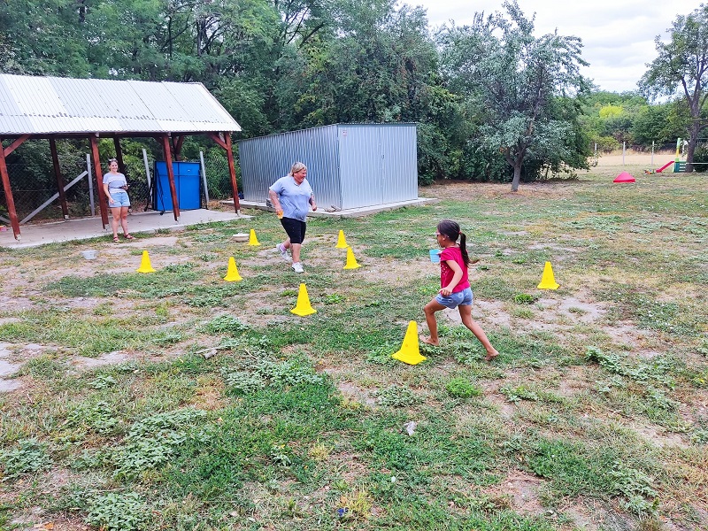 Ezután vízilufis számháborút játszottunk úgy, hogy számokat kellett kitalálni és az ellenfél lufiját kellett kipukkantani. Két kört játszottunk, a második körben tudtuk elérni a számháború lényegét, mert az elsőnél nem sikerült. Akkor mindenki letakarhatta a számot a kezével, és inkább egy gyorsasági verseny volt, senki nem kiabált számokat. Utána nehezebbé tettük a játékot, voltak védők és voltak olyanok is, akik kiabálták a számokat. Az óvodásoknak számok helyett jeleket csináltunk, hogy ők is tudjanak játszani.