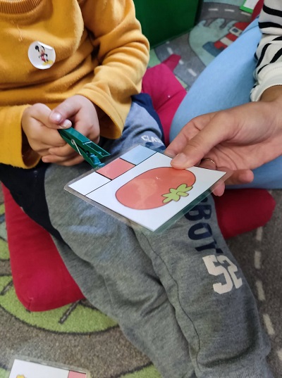 Az egyik kisfiú a héten egyébként egy csipeszes feladat végén három különböző módszerrel is leszámolta, mennyit csinált meg: a csipeszeket, a lapokat is először összefogva, majd a lapokat szétszedve is. Pedig nem is matekos ovis klub volt, csak annyi történt, hogy amíg a többiekre várt, megkérdeztem, szerinte hányat gyűjtött. Ebben a fél perces tevékenységben annyi minden benne volt. Mert itt nem mondóka volt csak a számsor, rendben volt finommotorosan is, nemcsak a kinesztetikus-verbális összerendezettség, a spaciális koordináció és a kardinalitás működött, de emellé még saját motivációra, többféle módszerrel a mennyiségállandóság kérdését is felvetette, kipróbálta, bizonyította.