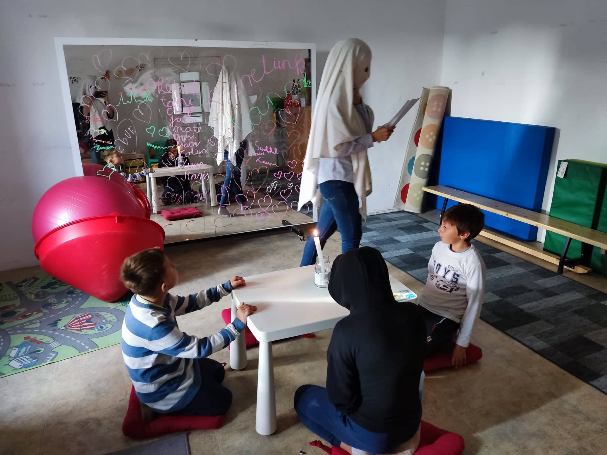 Nem igazi a Halloween közös rémület nélkül. Idén a tanoda kísértetkastéllyá (is) átalakult. Bizony-bizony, a gyerekek három szellemnek segítettek, hogy végre kiszabaduljanak kísértetlétükből és szabadok legyenek: egy kétbalkezes hóhérnak, egy tánc-és illemtanárnak, illetve a kastély szakácsnőjének. Van, akinek a fejét, van, akinek a szívét kellett összerakni, hogy mindez megtörténjen (meg lehet tippelni, hogy kinek mit), de a tánc-és illemtanár kívánsága néhány szépen kivitelezett táncmozdulat volt. A küldetés sikeres teljesítését egy közös lakomával zártuk a kastély báltermében, ahol ínycsiklandozó múmiakenyeret és a kedves szakácsnő által főzött gumicukrot fogyasztottak a résztvevők.