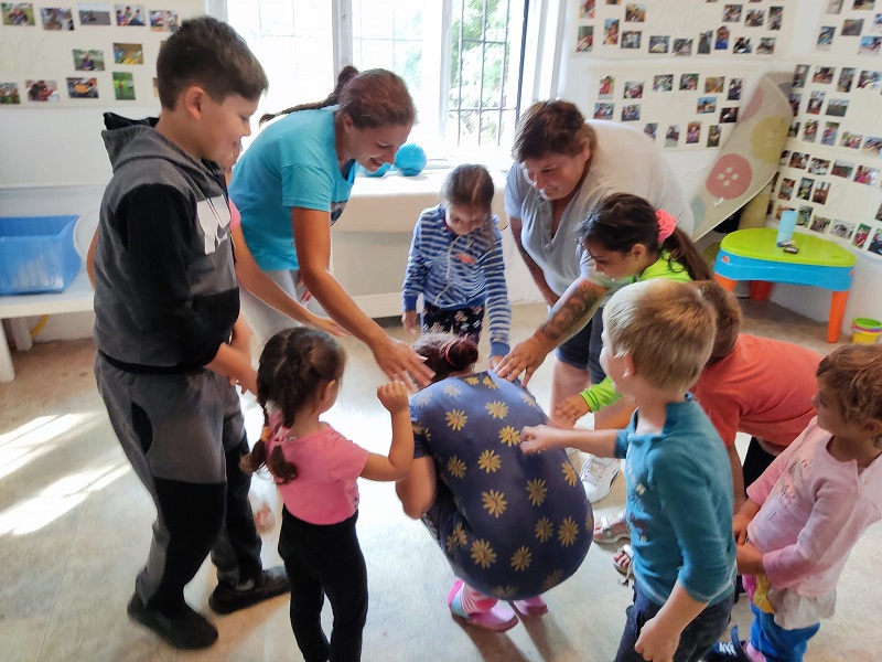 “Az első játék a fekete cica volt, ott le kellett guggolni az egyiknek, körbe kellett állni a többinek, és meg kellett simogatni a bent álló macskát. Ő nyávogott, és amelyik jobban kacagott, az lett a fekete macska. Utána jött egy labdás játék, ott a térd között, ugrálva kellett elvinni a labdát, és beleejteni a szoba végén a karikába. A végén pedig kiskanállal vitték a szájukban a cukrot, azzal is vették ki és vitték egyik pohárból a másikba. A gyerekeknek tetszett, örültek neki, legjobban a cukrosnak örültek meg a labdásnak.” (Angéla)