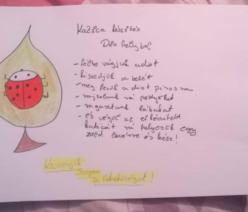 - És végül az elkészített katicát ráhelyezzük egy zöld levélre és kész!” (Juci)