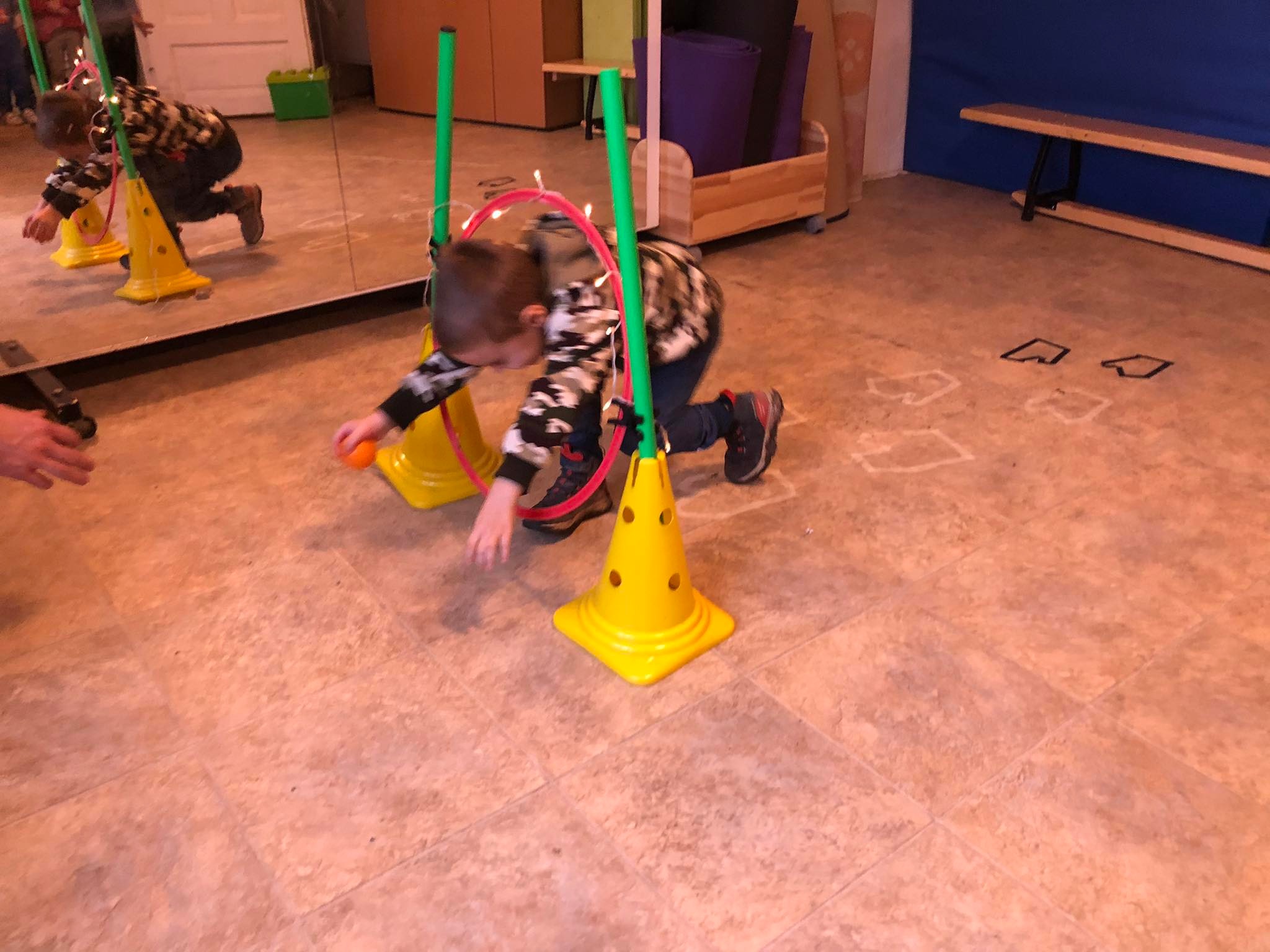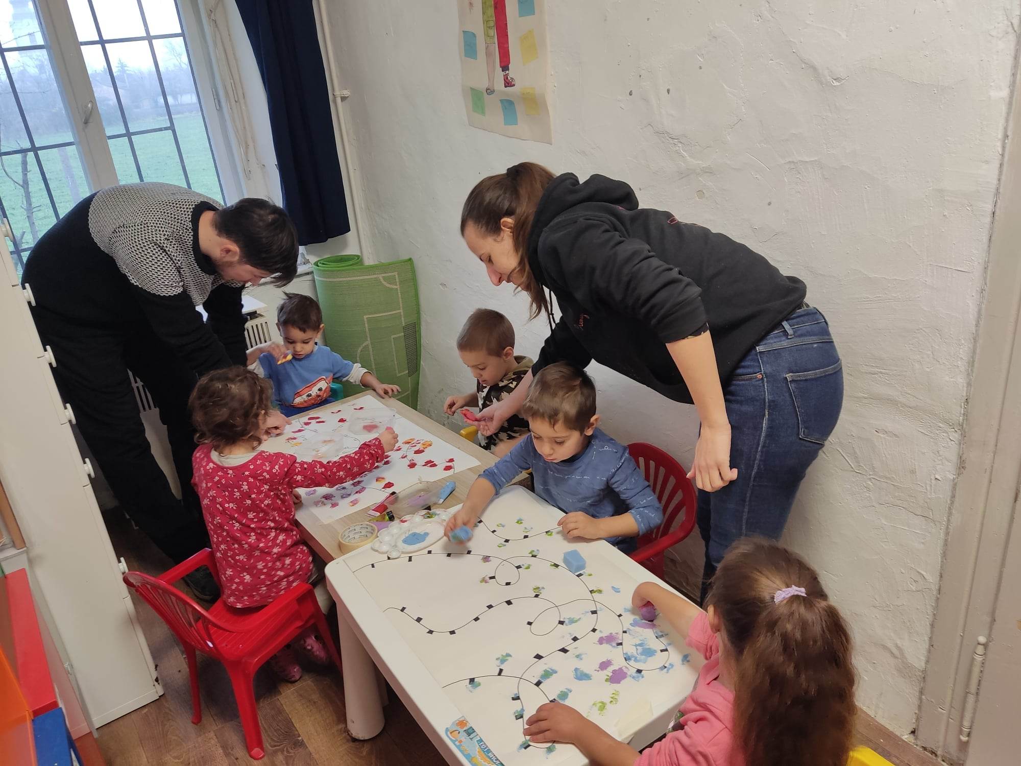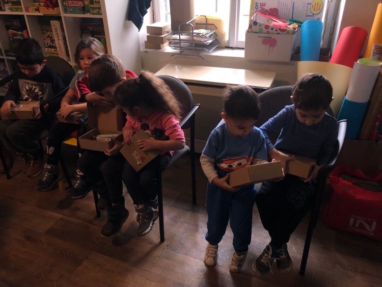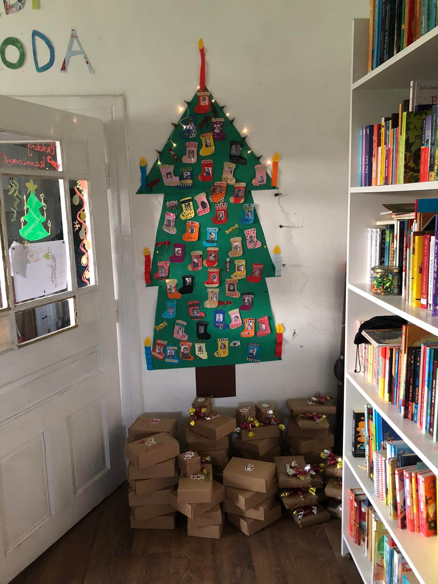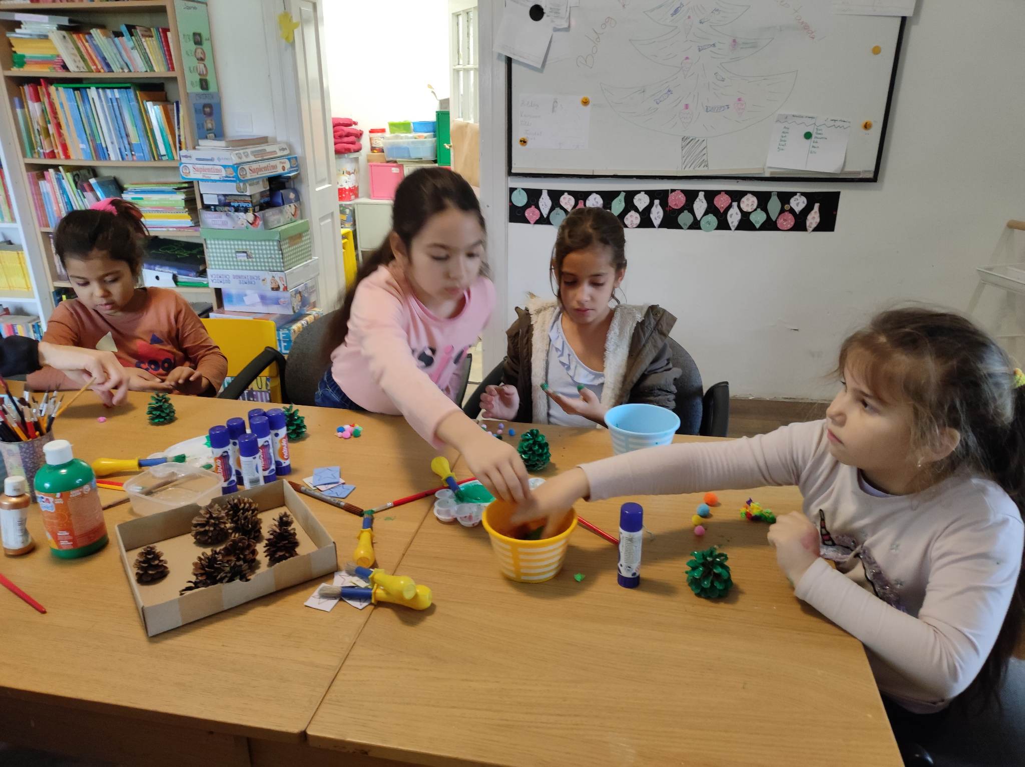 A csütörtök reggelt egy frissítő ovis karácsonnyal indítottuk, ami majdnem teljes létszámban zajlott, aminek nagyon örültünk, hiszen hetek óta betegségek tömege húzta keresztül a számításainkat. Nagy vonalakban hasonlított ez is a nagyobbakéra, itt is énekeltünk és kalimbáztunk, volt ajándékozás és finomságokkal is készültünk. De picit külön is terveztünk. Kezdésként például fényfüzéreket festettünk és egy akadálypályán keresztül díszítettünk fel egy karácsonyfát.