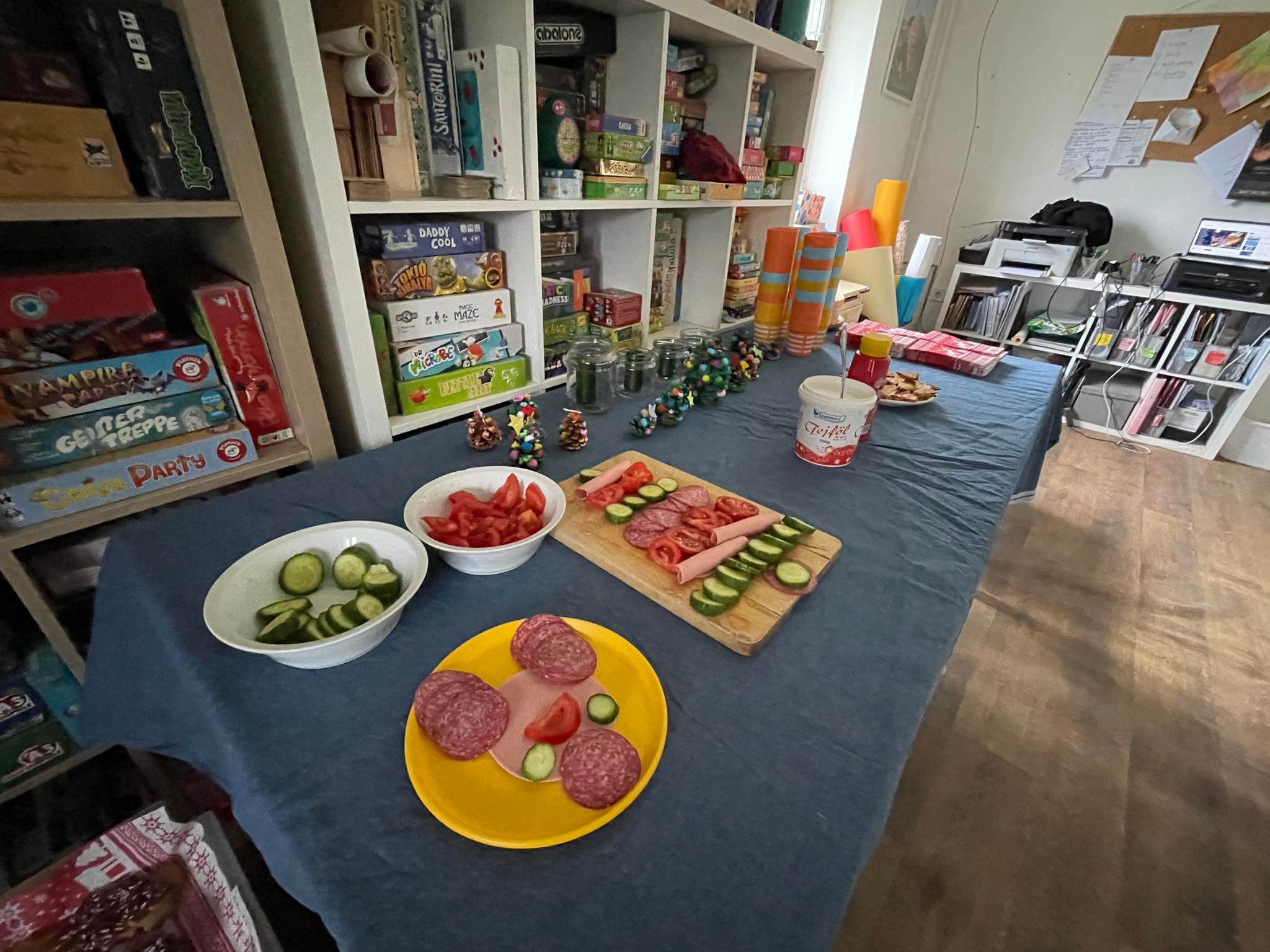 A csapat másik fele eközben a karácsonyi menüt készítette el. Sütöttünk, főztünk, kevertünk és kavartunk, hogy aztán egy csodás, svédasztalos terítéssel fogadjuk a pihentető mesenézés után az egész csapatot. Megettünk mindent és az ajándékok is a helyükre kerültek.