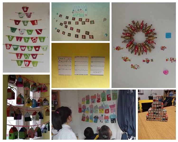 A feladat idén, minden tanulás előtt egy kézműves elkészítése volt, amit eredetileg a karácsonyfára szerettünk volna tenni, így a téli táborra egy felkészített fa vár ránk. A kalendáriumon először mindig megnéztük, hogy hányadik nap van decemberben, megszámoltuk, hogy hány nap van karácsonyig, majd a naphoz tartozó díszt felfordítva az aznapi kézművesre is fény derült.