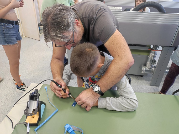 A középiskolásokkal együtt voltunk az NI-ban, ahol USB-t kellett összeforrasztani. Csoportokba voltunk elhülyéskedtünk, jól éreztük magunkat.