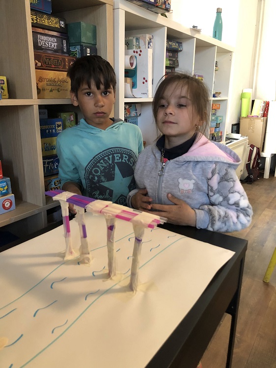 Szokott lenni projekthét a tanodába olyankor nem tanulunk. Egy ilyen alkalommal hidat építettünk, pálcikákból, csipeszből.