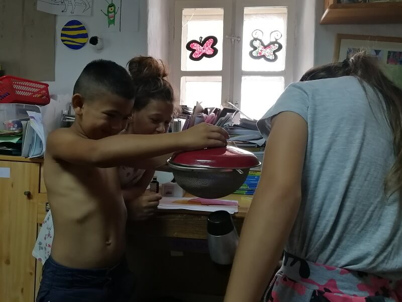- Végül a harmadik és egyben legizgalmasabb modell jön. A szűrőbe tegyünk néhány papírgalacsint, majd fedjük le. Kapcsoljuk be a hajszárítót és fújjunk be alulról levegőt. Itt a részecskéket a kis galacsinok jelképezik, figyeljük meg, hogy pattognak a szűrőbe zárva.