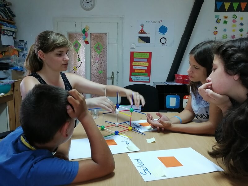 Előkészület: A Babylon-készletből (vagy más golyókból és rudakból álló készletből) rakjunk össze egy egyszerű, szabályos kristályrácsot. Mi egy kockát készítettünk.