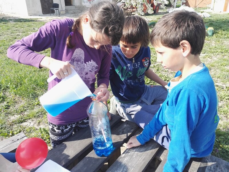 Ezzel a kísérlettel mi egy projekthéten foglalkoztunk, ahol egy kis felkészülés után a gyerekek mutatták be egymásnak a saját kísérleteiket, és ők magyarázták el a többieknek, hogy mi miért történt.