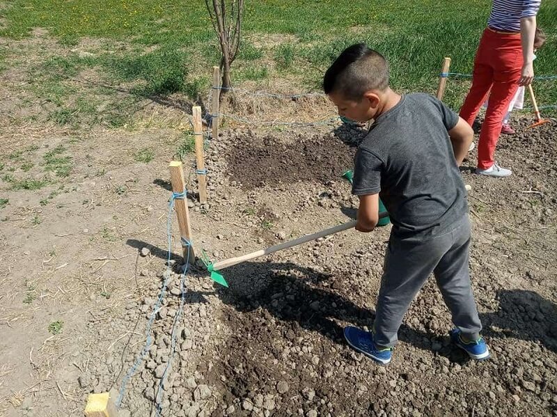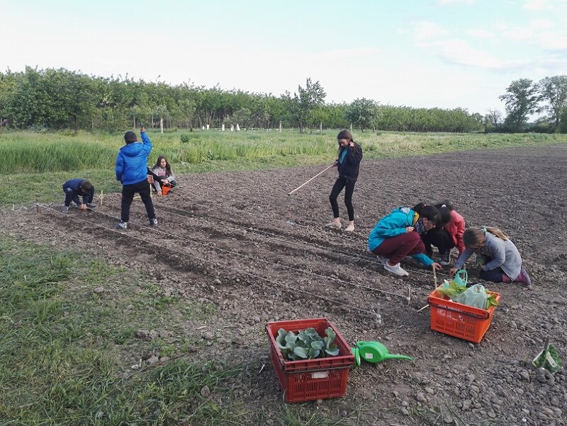 A rossz emlékek elűzésére először 2017 tavaszán kezdtünk kis kertet csinálni. A tanoda kert végében kapott egy kis helyet az első kertünk. A gyerekekkel közösen ültettünk rengeteg féle dolgot: krumpli, paradicsom, paprika, hagyma, retek, borsó, saláta, káposzta, kukorica és répa részleg is alakult.